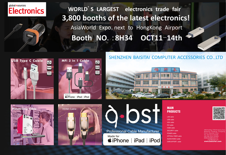 柏斯泰非常重視此次參展,精心準(zhǔn)備了數(shù)十項(xiàng)新品首次先相,包括一拖三MFI蘋(píng)果數(shù)據(jù)線,布編手機(jī)數(shù)據(jù)線、高頻線材、網(wǎng)線通訊線纜、VGA數(shù)據(jù)線等電腦連接線。