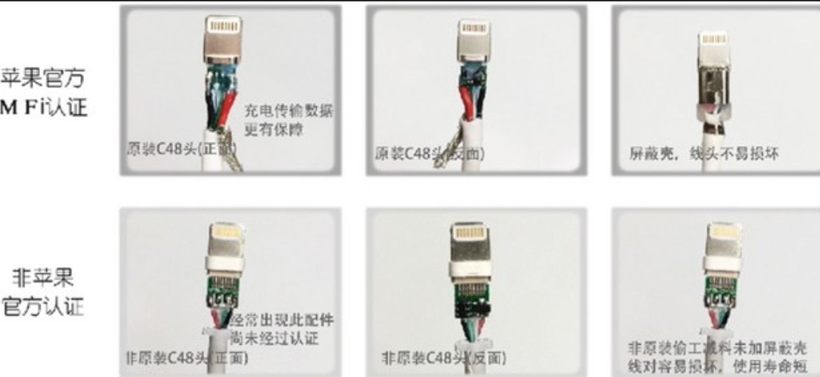 只有通過MFi認證授權的廠家,才有資格拿到原裝Lightning頭,并在產品包裝上標注“Made for iPhone,iPad,iPod”